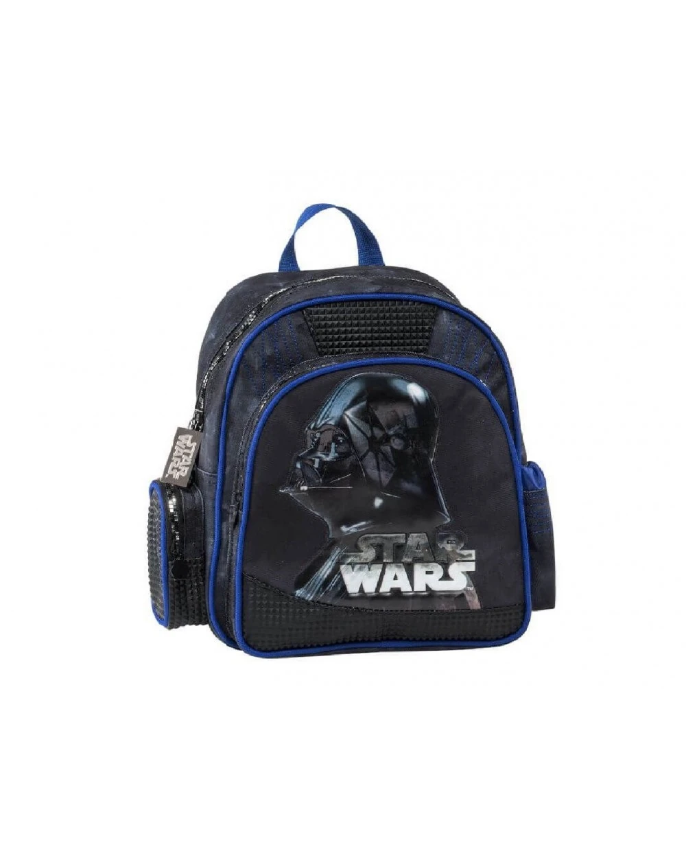 Σακίδιο Νηπιαγωγείου Water Color – Star Wars με μια μεγάλη θήκη, μια μικρότερη μπροστά, και δύο πλαϊνές θήκες όπου η μία κλείνει με σχοινί και η δεύτερη με φερμουάρ.