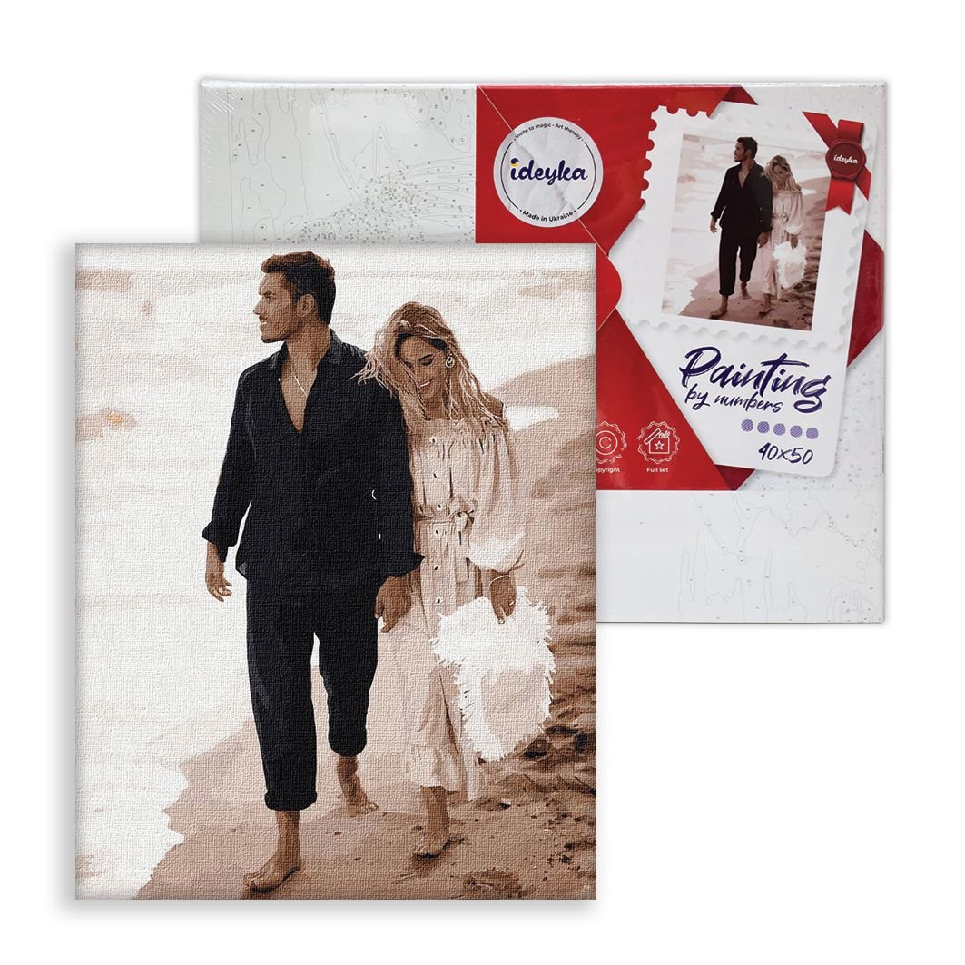 Νέοι καμβάδες Ideyka. Ένα σετ δημιουργικότητας με χρώματα και πινέλα που σε καθοδηγεί ώστε να δημιουργήσεις το δικό σου ολοκληρωμένο έργο! Δημιούργησε τον δικό σου καμβά, ακολουθώντας προσεκτικά τα αριθμημένα περιγράμματα και η πραγματική εικόνα θα αρχίσει να εμφανίζεται καθώς χρωματίζεις. Θέμα: A DATE ON THE COAST DODRYNIN & KVITKOVA (KHO4750) 40Χ50cm.