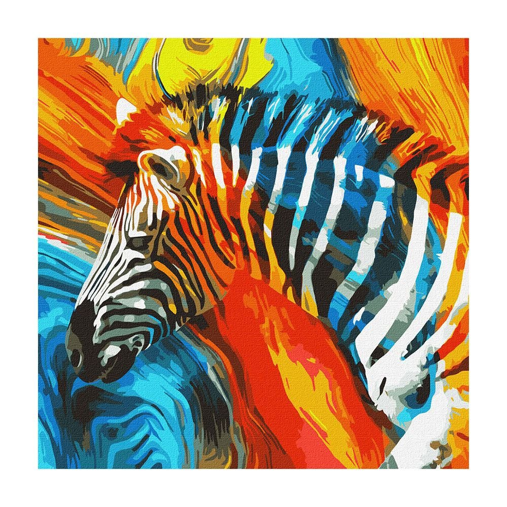 Νέοι καμβάδες Ideyka. Ένα σετ δημιουργικότητας με χρώματα και πινέλα που σε καθοδηγεί ώστε να δημιουργήσεις το δικό σου ολοκληρωμένο έργο! Δημιούργησε τον δικό σου καμβά, ακολουθώντας προσεκτικά τα αριθμημένα περιγράμματα και η πραγματική εικόνα θα αρχίσει να εμφανίζεται καθώς χρωματίζεις. Θέμα: COLORED ZEBRA (KHO4269) 50Χ50cm.