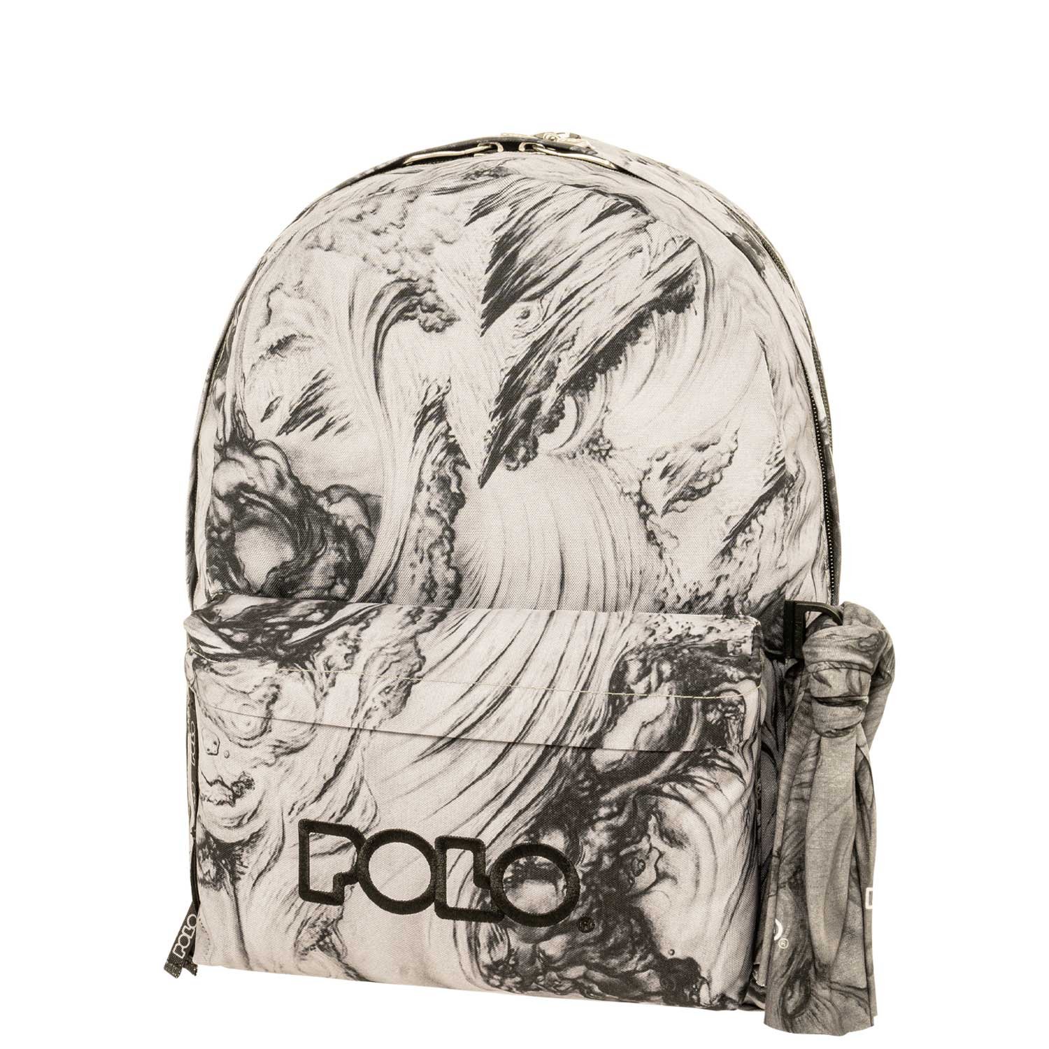 2 κεντρικές θήκες, η μία με εσωτερικό χώρισμα και τσεπάκι με έξοδο για ακουστικά 1 μπροστινή τσέπη 1 Πλαϊνή θήκη κινητού Πλαϊνή θήκη για το παγούρι ή το πλαστικό μπουκάλι. Διαθέτει λαστιχένιο ιμάντα για επέκταση χωρητικότητας ώστε να μπορεί να χωράει διαφορετικά μεγέθη μπουκαλιών ή άλλα αντικείμενα πχ Ομπρέλες. Ανατομικοί, αεριζόμενοι και εργονομικά σχεδιασμένοι ιμάντες πλάτης για καλή στήριξη του σακιδίου και προστασία των ώμων και της πλάτης. Όλες οι θήκες διαθέτουν ανθεκτικά επώνυμα φερμουάρ SBS υψηλών προδιαγραφών. *(Φερμουάρ με αντοχή και λειτουργικότητα για χιλιάδες χρήσεις). Ειδικά σχεδιασμένο φερμουάρ στην κεντρική θήκη του σακιδίου με υποδοχή για κλείδωμα με λουκέτο. *(Το λουκέτο που θα διαλέξετε πρέπει να έχει διατομή κατάλληλη ώστε να χωράει στους υποδοχές του φερμουάρ) Μοναδικό ιμαντάκι Polo στην μπροστινή τσέπη – Άλλο ένα χαρακτηριστικό της μόνης αυθεντικής. Επειδή τα βιβλία του Δημοτικού έχουν μεγάλο όγκο και βάρος, η POLO δε συνιστά τη χρήση του συγκεκριμένου σακιδίου ως σχολική τσάντα Δημοτικού. Δώρο μαντήλι multiscarf Polo που μπορείτε να το φορέσετε με 12 διαφορετικούς τρόπους. Πατήστε πάνω στην εικόνα για να μάθετε πώς.